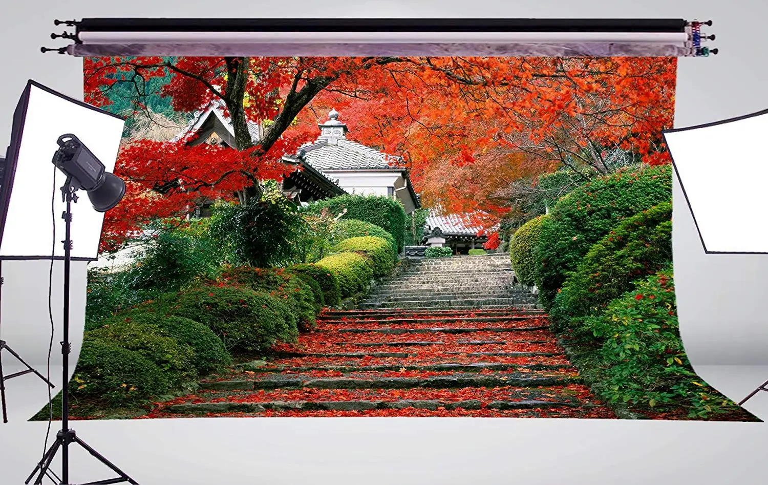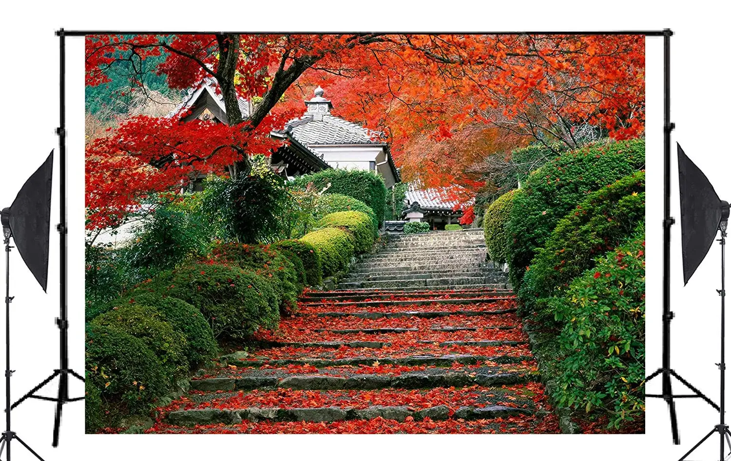 Best Seller 7x5ft Beautiful Maple Leaves Ladder Nature Backdrop Lush Green Plants Wedding Photo Studio Photogra
