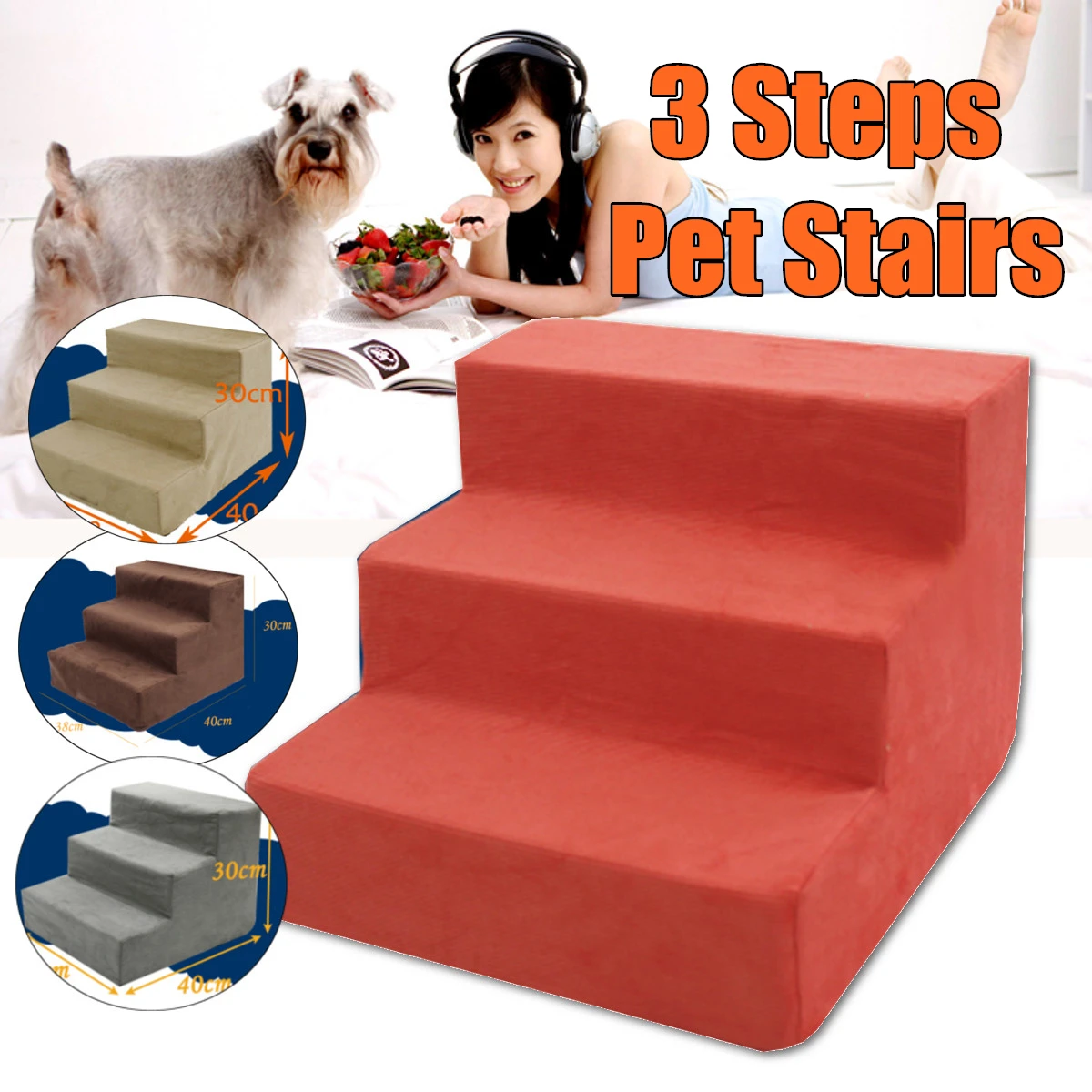 3 Steps Portable Pet Dog Cat Stairs Ramp Easy Way Ladder Cover Indoor Nonslip Sofa Bed Leather Cove