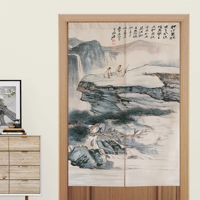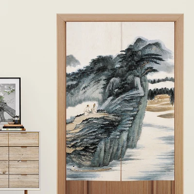 Chinese traditional style landscape mountain fabric curtain hotel living room door curtain home dec