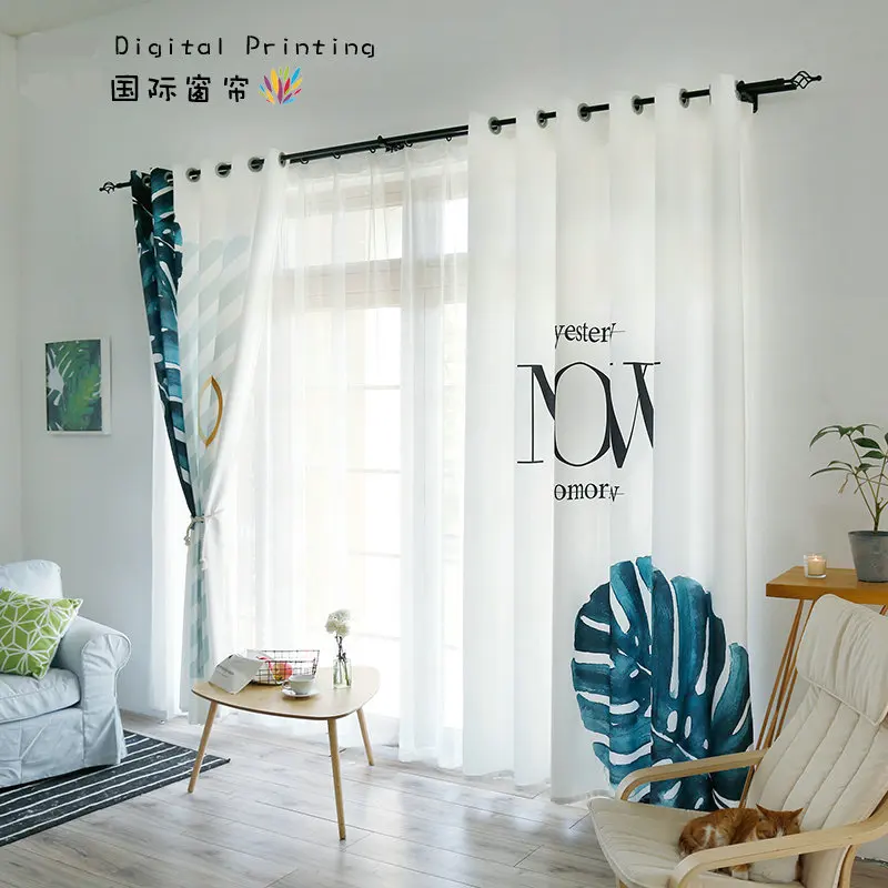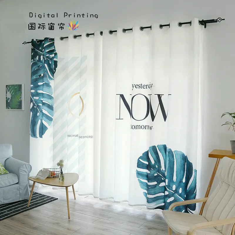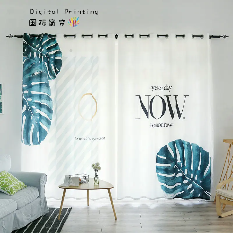 Best Custom Made 2x Window Drapery Living Room Curtain Window Dressing Tulle 200x260cm Palm Leaves Rainf