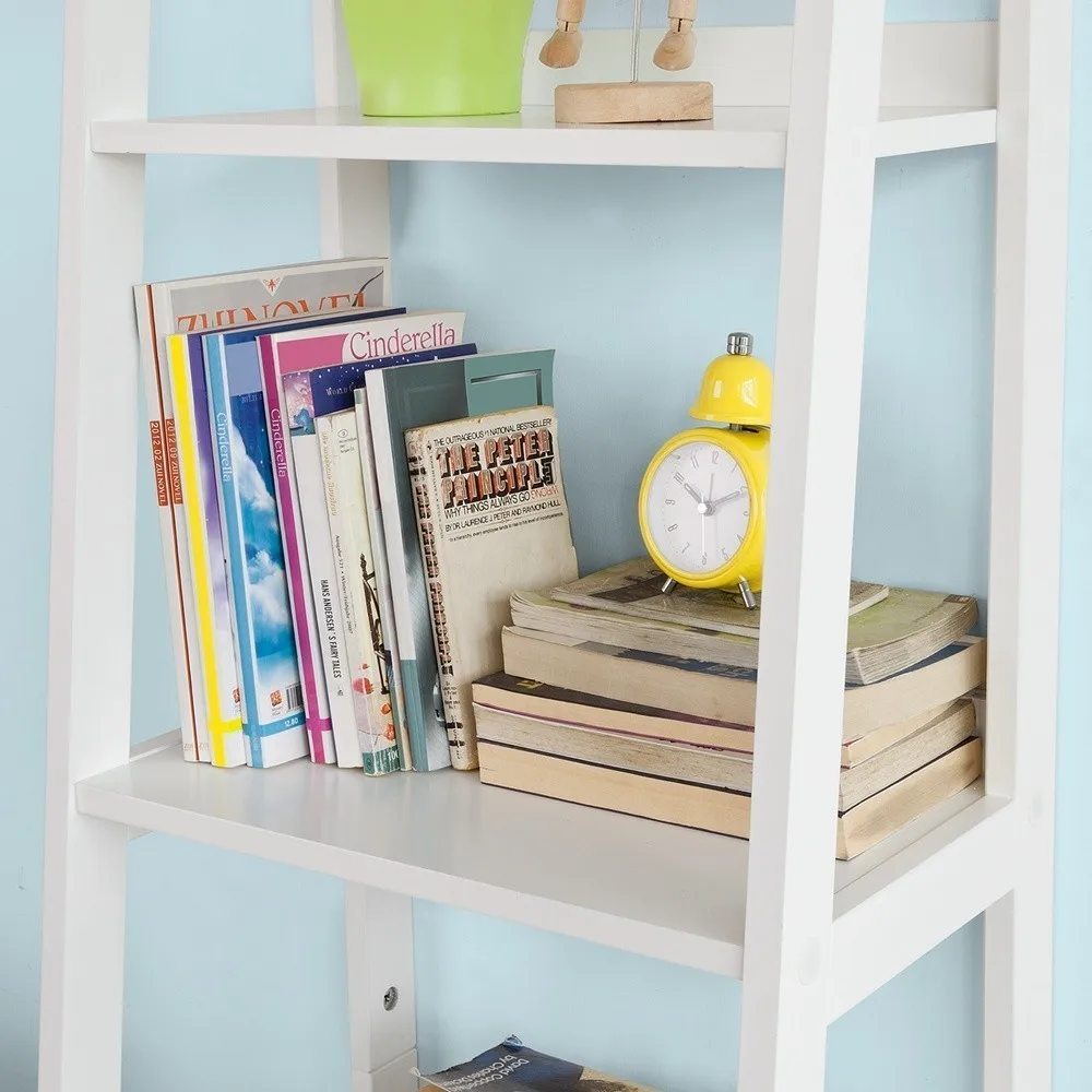 SoBuy FRG116-K-W White Storage Display Shelving Ladder Shelf Bookcase with Drawer and 4 Shelves