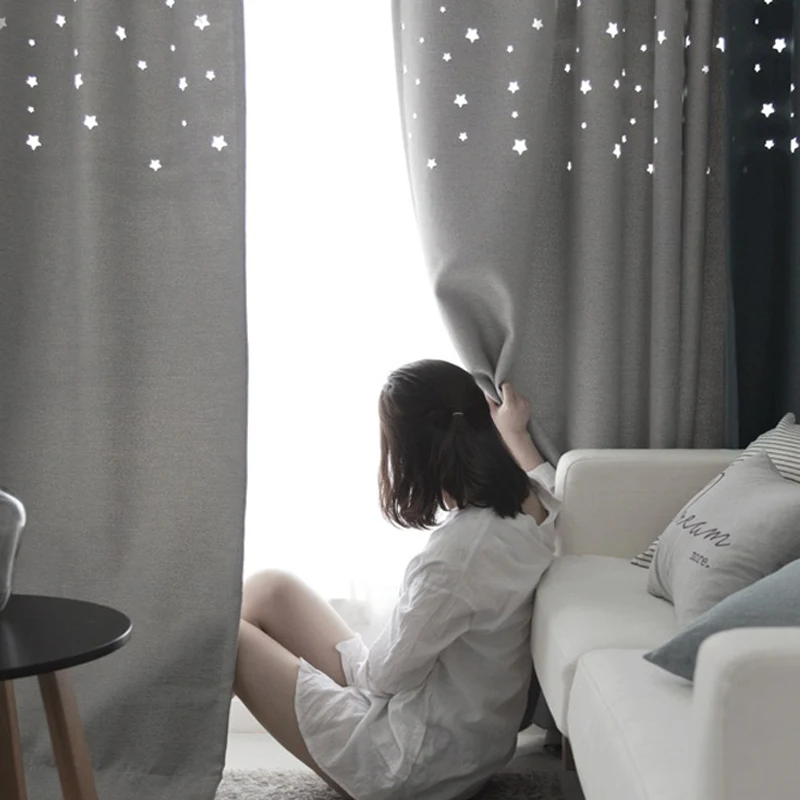 BEST QUALITY Korean Dream Hollow Star Window Curtain For living Room Bedroom Linen Curtain Window Treatment Drap