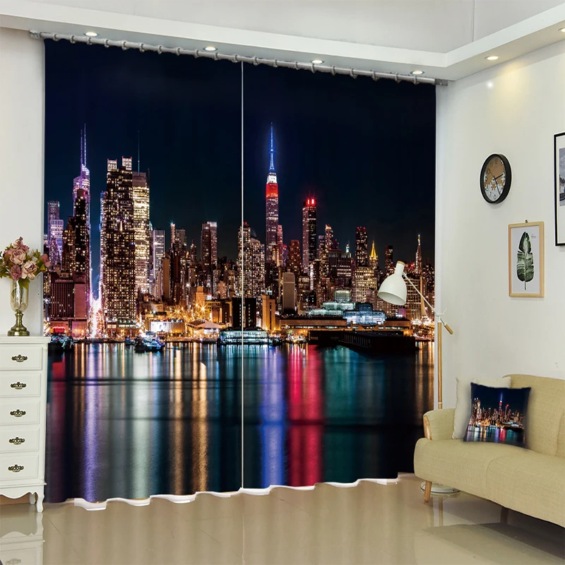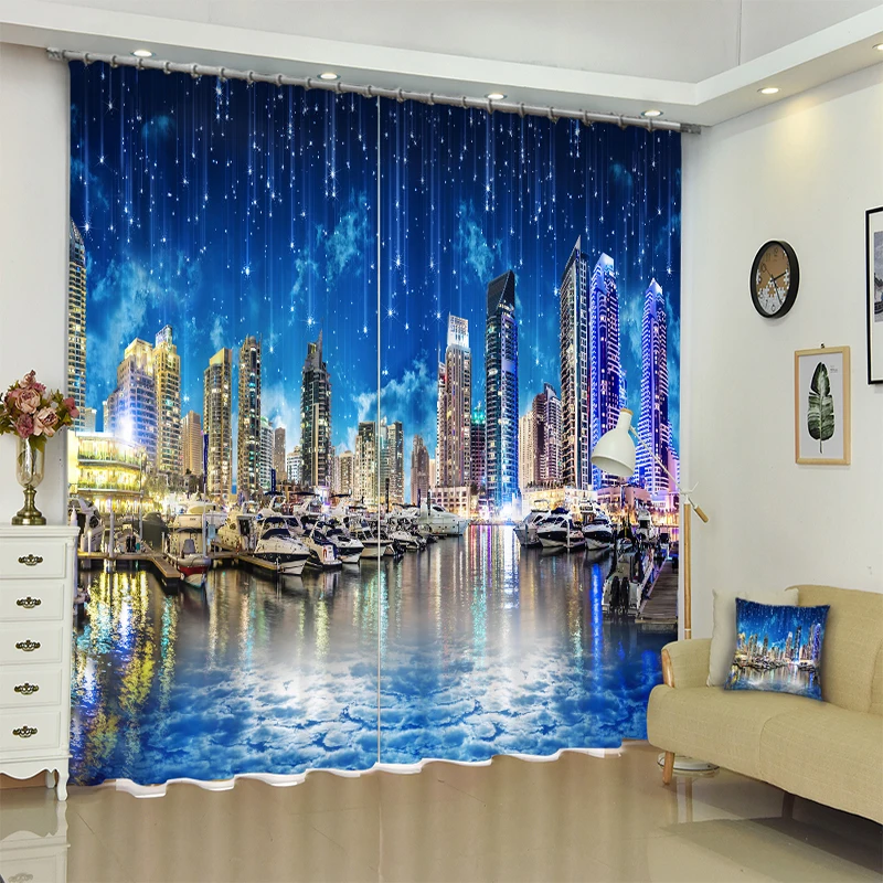 HOT Sale New High Quality Polyester 3D Blackout Curtain Paris City Night Scene Pattern Thicken Fabric Bedroo