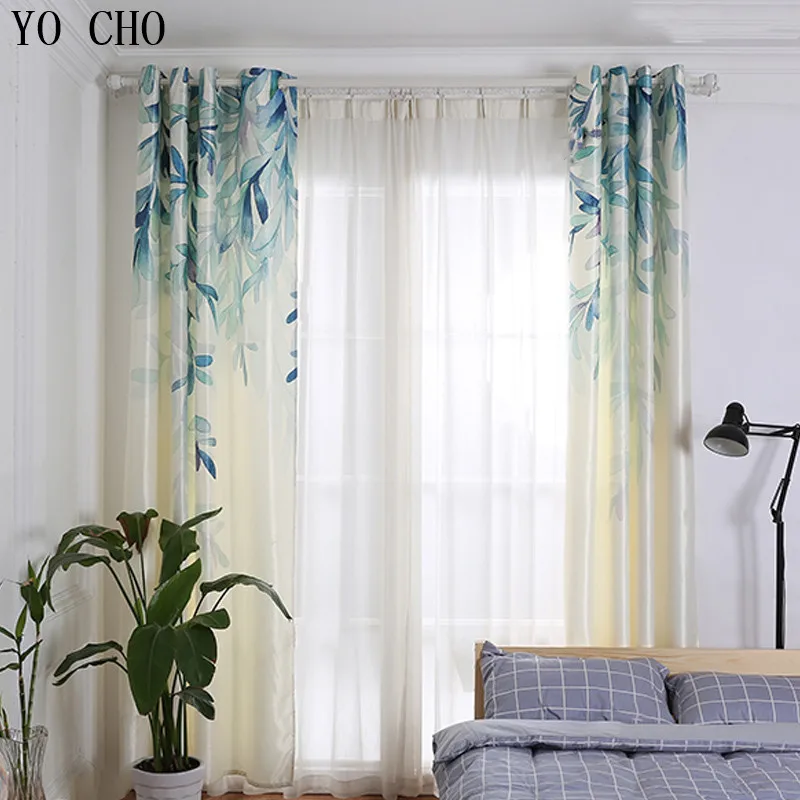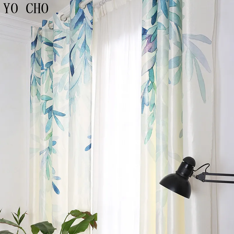 YO CHO hot garden spring willow leaves window curtains for living room pastoral small fresh ready m