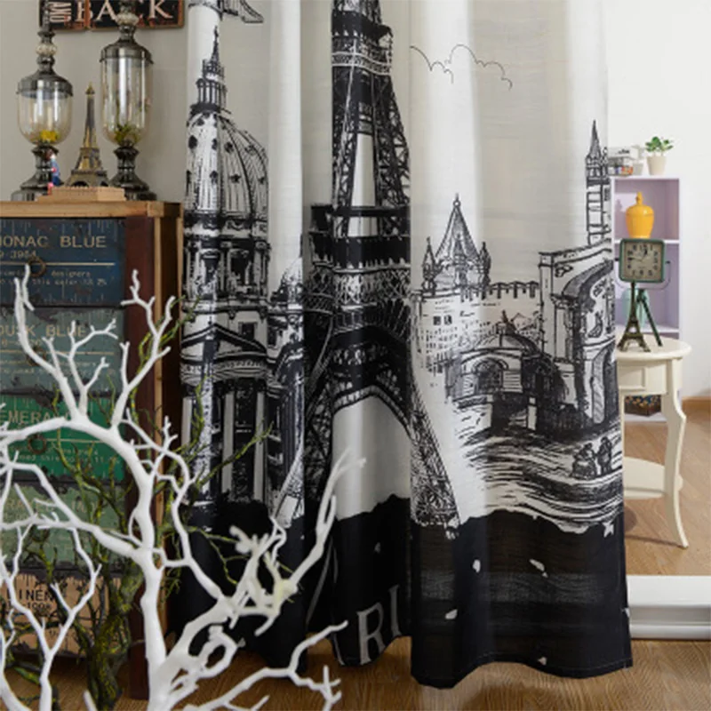 Velvet Linen 3D Digital Printing Curtain European Simple Shading Fabric Curtain Living Room Bedroom