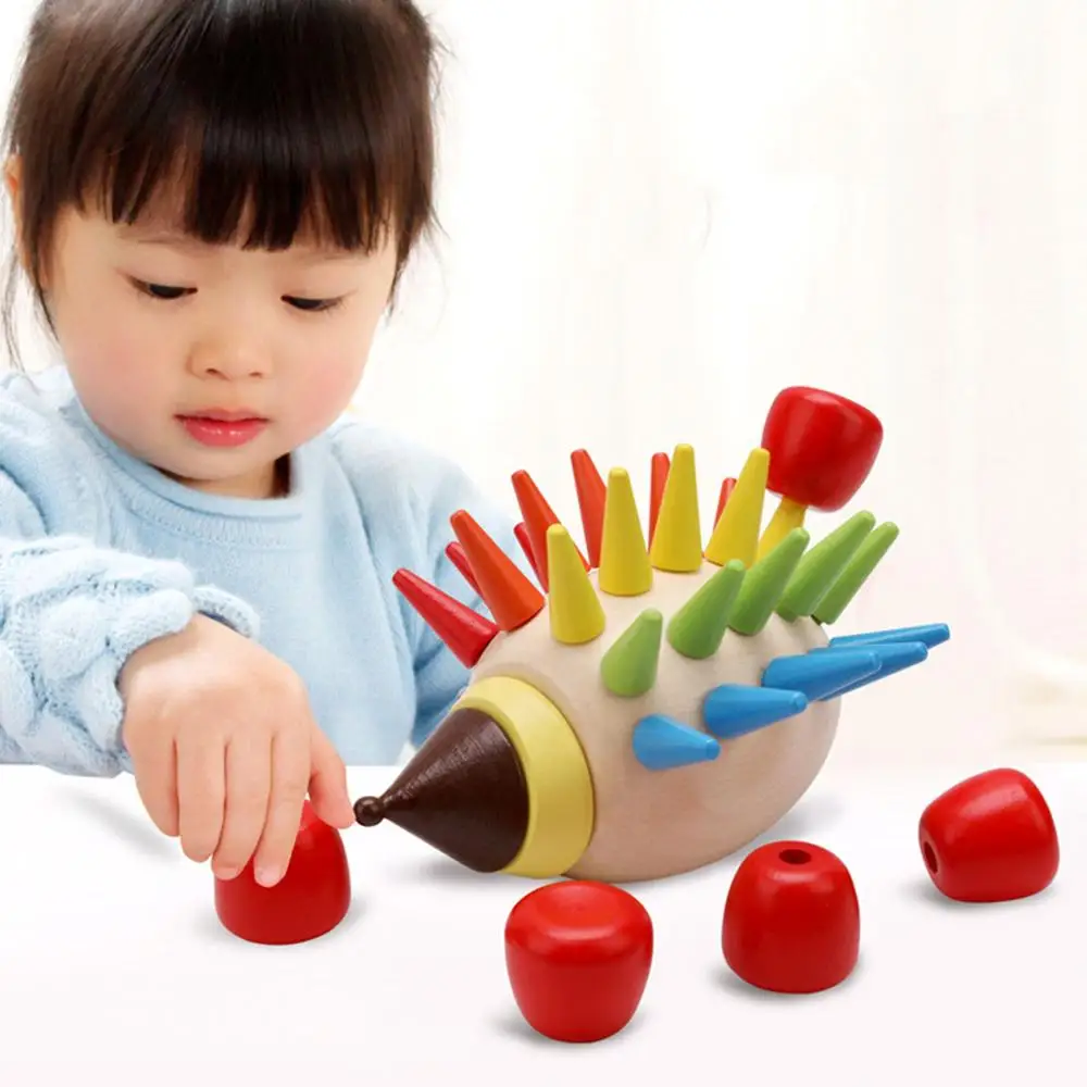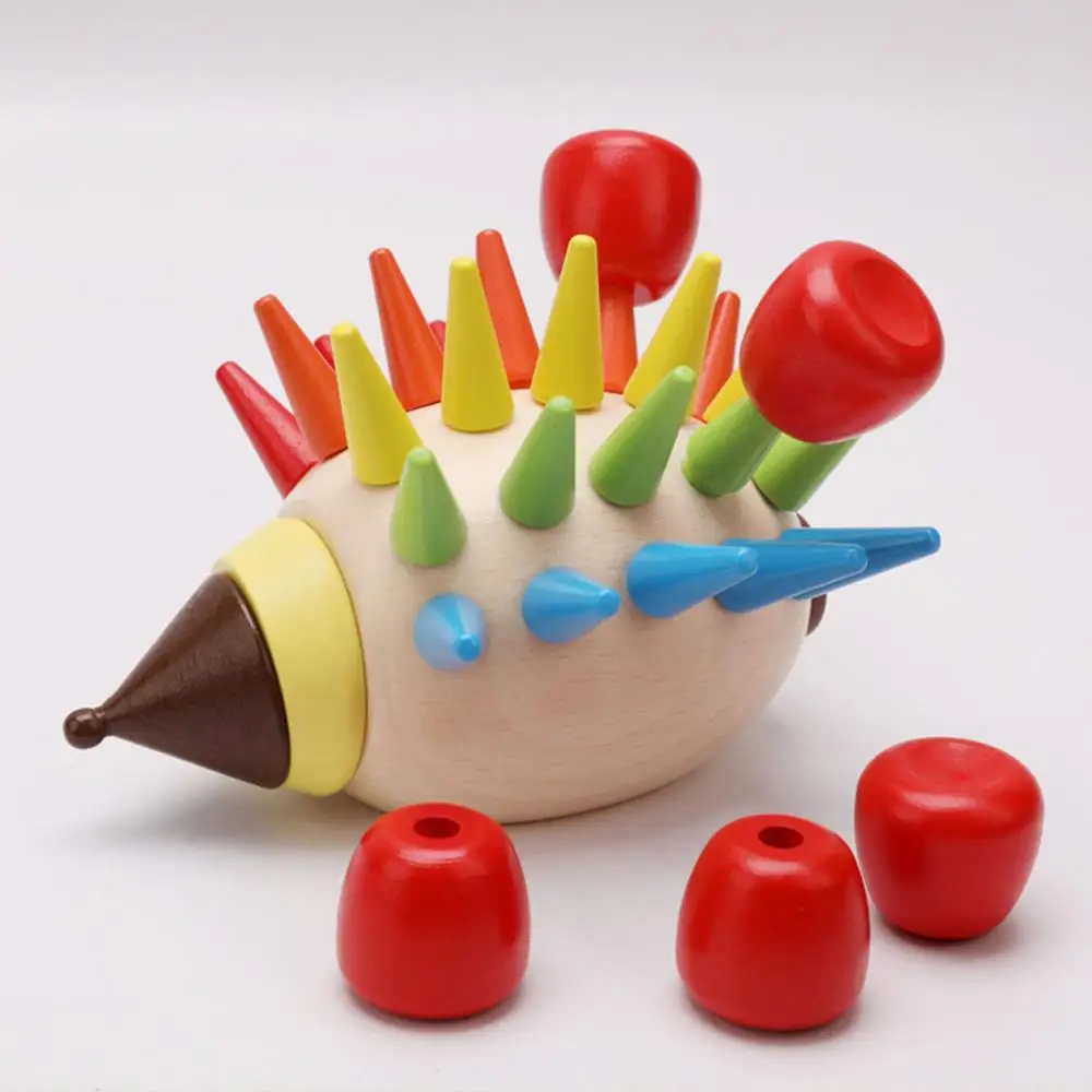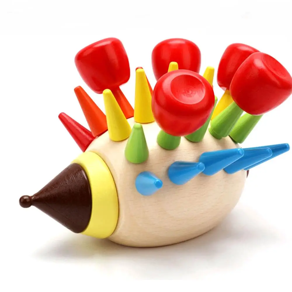 Wooden Blocks Toys DIY Building Magnetic Colorful Hedgehog Inserted Toy Block Children Early Childh