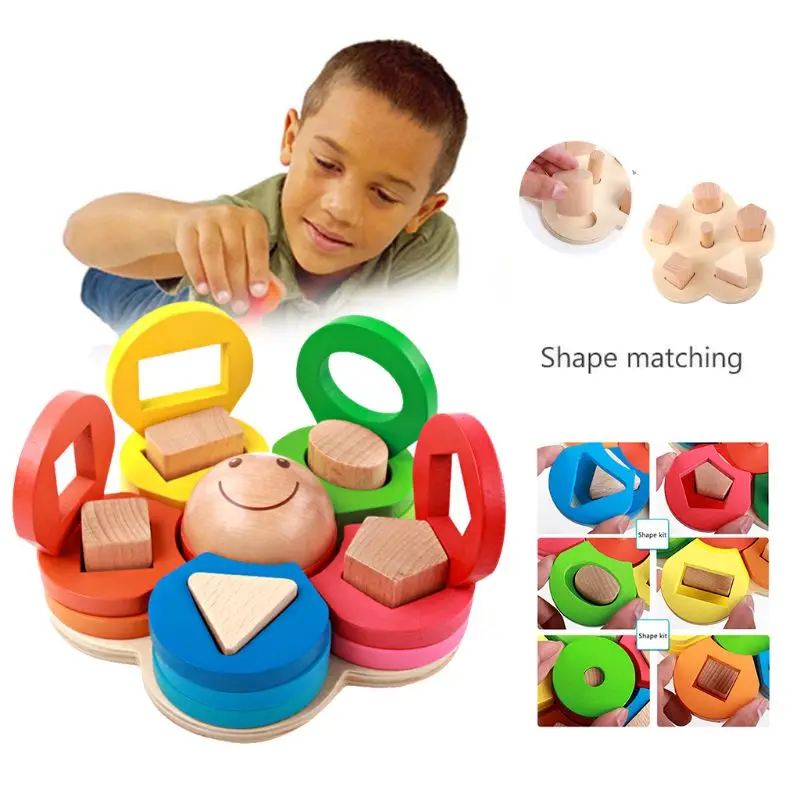 HIGH QUALITY Wooden Educational Toys Set Baby Early Educational Tool Flower Shape Column Sleeve Teaching Materia